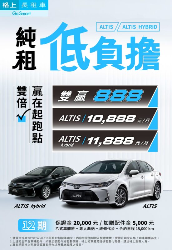 租車主要可分為長期租賃、短期租賃及代駕租賃,可選擇的項目則有保險、稅金、車輛檢驗、維修保養、代用車…等。